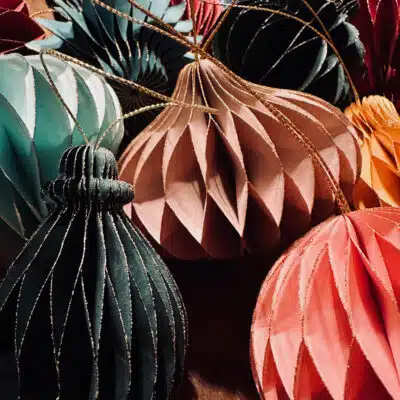 Diese hochwertigen Ornamente aus Papier in eleganter Wabenstruktur (Honeycomb) sind die perfekte Wahl für stilvollen und umweltbewussten Baumschmuck. Wähle aus zwei Sets: